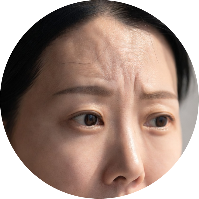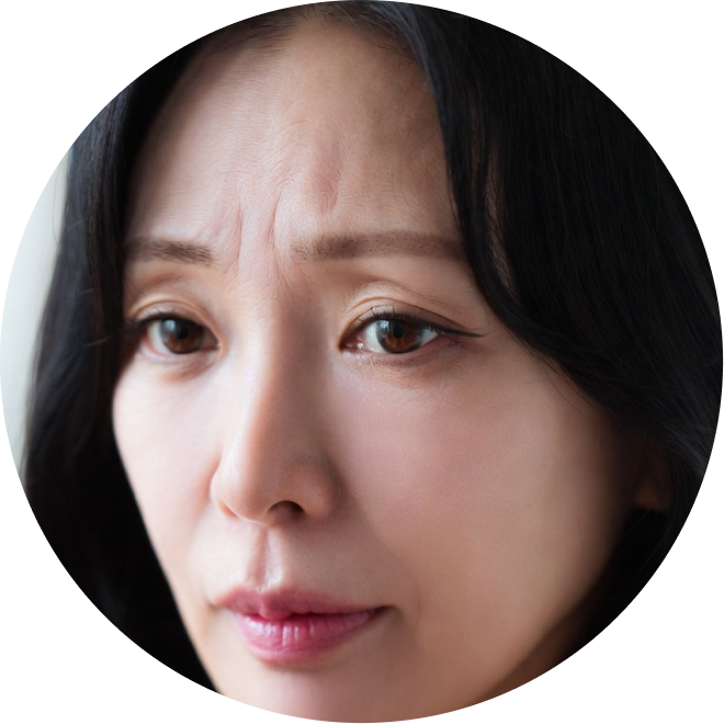 이마나 미간 주름이 깊고 눈썹이 처져 보이는 분
